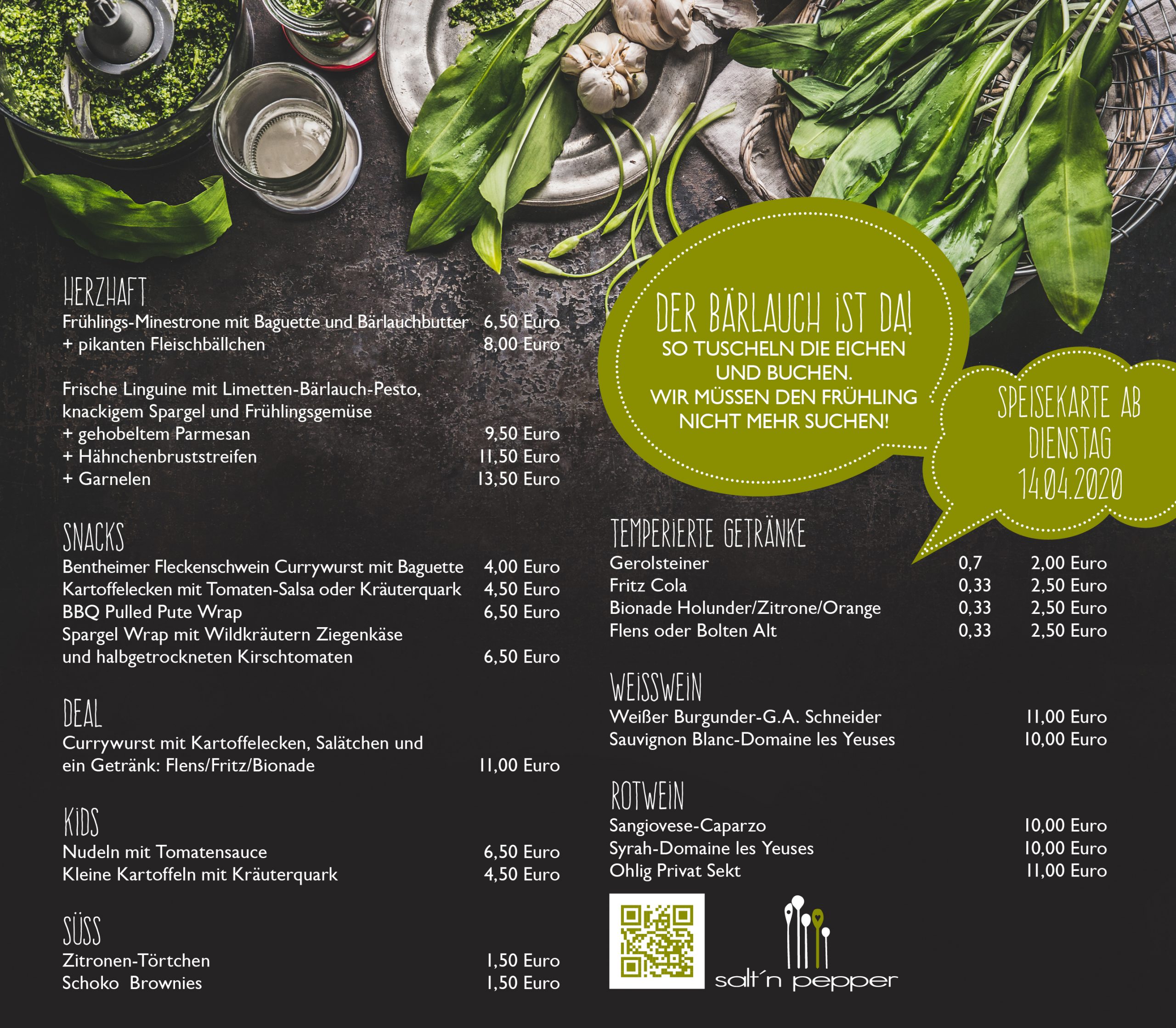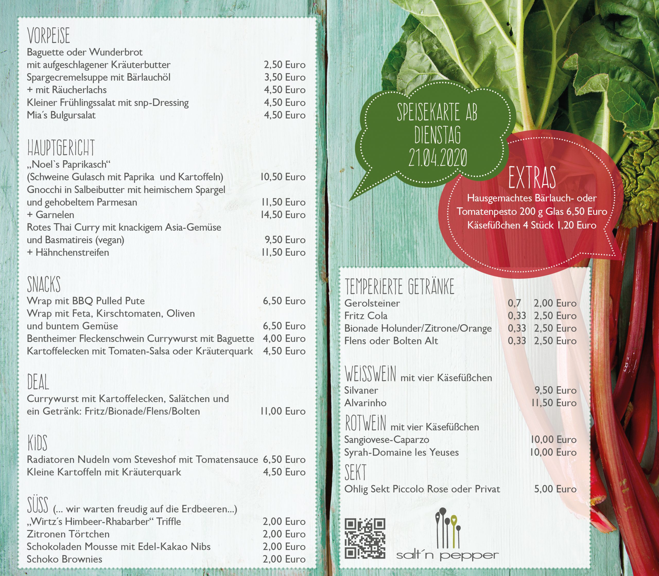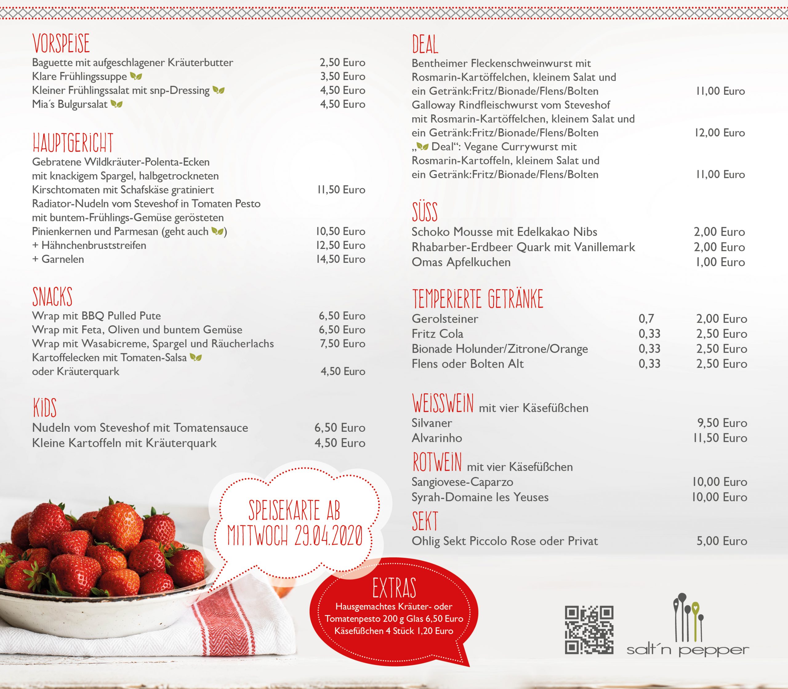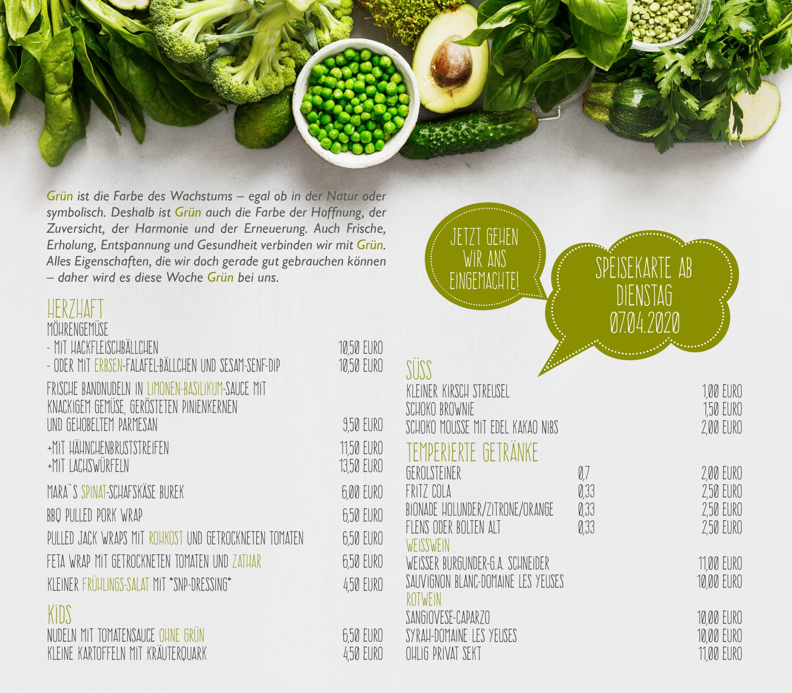 Kein Scherz, ab dem 1. April schwingen wir für Euch die Kochlöffel und dirigieren ein Konzert aus frischen, regionalen Zutaten, denn bei uns kommt nichts aus der Tüte. Und wie funktioniert das Ganze??? Eine regelmäßig wechselnde Speisekarte findet Ihr bei Facebook, Instagram und auf...